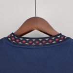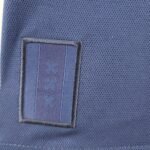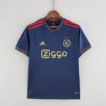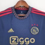 A nova camisa reserva do Ajax é predominantemente azul escura e traz o vermelho e o dourado como cores complementares. A base é azul e o dourado é visto na aplicação do escudo, que traz as três estrelas superiores em vermelho. O escudo da Adidas e o patrocinador também são dourados.