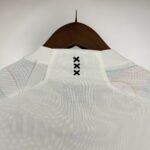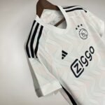 A Adidas estampa seu logo em azul marinho, no lado direito do peito, enquanto o escudo do Ajax é colocado no lado esquerdo, em uma versão azul marinho.