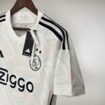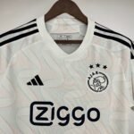 A nova camisa reserva do Ajax é predominantemente branca e traz um padrão gráfico no corpo, em forma de ondas, inspirado na arquitetura de Amsterdã, com gradiente em turquesa e rosa. Os detalhes do template, como as listras laterais que se juntam na barra, as três listras nos ombros e as três cruzes de Santo André na nuca são azul marinho, enquanto a gola V e os punhos têm a cor branca.