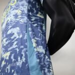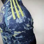 Detalhes em verde azulado são vistos em recortes nas axilas e nas laterais do kit. Já nas costas, um grande painel em azul marinho é visto para abrigar o nome e número dos atletas. Na nuca, as três cruzes de Santo André, o “XXX”, que também é um símbolo da capital holandesa, é visto em amarelo fluorescente, mesma cor da numeração e nome dos atletas.