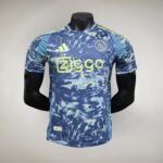 A  camisa reserva do  Ajax para a temporada é azul em um tom marinho e traz aplicações em amarelo neon que é vidto na nuca da gola V, nas três listras que percorrem os ombros e também na aplicação do logo da  Adidas e do patrocínio master da Ziggo. Além disso, a cor complementar aparece também nas linhas do escudo e também nas três estrelas no topo.