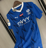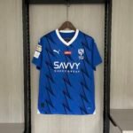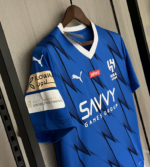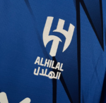 A nova camisa titular do Al-Hilal para a temporada é azul e traz grafismos em forma de raios em tom sobre tom ao longo do corpo do manto.