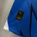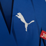 A gola é V branca, cor também visto na aplicação do escudo, no lado esquerdo do peito, logos da PUMA e patrocínio máster. Nas costas a numeração e nome dos atletas também são aplicadas em branco.