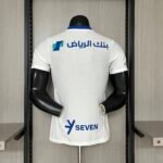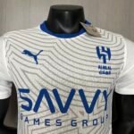 A nova camisa reserva do Al-Hilal para a temporada é branca e traz, na região frontal, um padrão de linhas cinzas que lembram impressões digitais. A gola é azul.