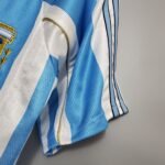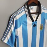 A camisa titular da Argentina para o ano de 1998 se destacou pelas listras que mesclavam azul celeste e branco brilhante. O Swoosh da adidas encontrava-se abaixo da gola, centralizado no peito, desta vez na cor preta, enquanto o símbolo da seleção argentina ficava ao lado esquerdo do peito, seguindo o padrão da “AFA”. A gola polo sutil apresentava listras brancas, com o restante do corpo da gola em preto. As mangas exibiam uma mesclagem contínua de azul celeste e branco, com um discreto detalhe: uma listra dourada que percorria da manga até as axilas da camisa. Nos ombros, três linhas desciam lateralmente da gola até o final das mangas, com listras finas em preto mesclando-se com o azul e branco da camisa celeste argentina. Destaca-se também a parte da gola, onde existe um “falso decote”, com o acrônimo da AFA no centro. O selo de autenticidade da camisa era posicionado na bainha inferior à direita.