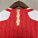 Um dos principais detalhes do manto é a sequência de W e D (26 wins/vitórias e 12 draws/empates) dispostas nas faixas laterais brancas, representando a campanha invicta de 2003-2004. As dorsais também são brancas, enquanto a gola redonda e os punhos têm a cor vermelha com contorno dourado, mesma cor das três listras, nas mangas.
