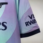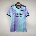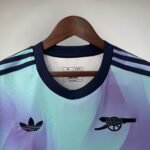 A nova terceira  camisa dos  Gunners trás um um padrão no corpo, em forma de ondas, com um gradiente, do azul celeste para o roxo, que deve ter um storytelling explicando no momento do lançamento. A gola redonda, as três listras e nos punhos têm a cor azul marinho.