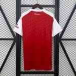 A nova camisa titular do Arsenal traz o tradicional design com a cor vermelha no corpo e as mangas brancas, sendo que desta vez, ao longo do corpo do manto é visto repetidamente o “A” em letra gótica, símbolo do clube, e retirado do brasão “Victoria Concordia Crescit”.