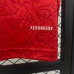 O escudo do Arsenal é aplicado em linhas brancas, de forma vazada, assim como o logo da adidas e o patrocínio máster. As três listras percorrem os ombros em vermelho, cor que também está no patrocínio de manga.