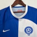 No lado esquerdo do peito, o primeiro escudo da equipe é aplicado, enquanto o swoosh aparece em branco. Já dentro da gola, um selo especial traz a frase “Desde 1903 – 120 años de Atleti”.