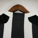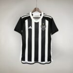 A nova camisa titular do Atlético-MG é baseada no template da Copa do Mundo 2022 e traz as tradicionais listras verticais em preto e branco, sendo as listras pretas um pouco mais largas que as brancas. Além disso, elas trazem um leve degradê em tom sobre tom feitas de retículas.