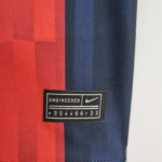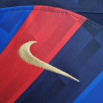 O escudo do Barcelona é aplicado no lado esquerdo do peito, enquanto o Swoosh aparece em dourado, no lado direito. A grande novidade fica por conta da estreia da Spotify no patrocínio máster, que também é aplicado em dourado.