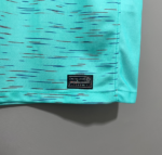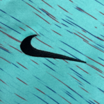 O escudo é aplicado com o fundo em azul turquesa com linhas pretas, cor que também é vista no Swoosh da Nike e no patrocínio da Spotify.