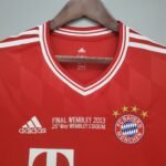 A camisa da equipe alemã treinada por Pep Guardiola na temporada de 2013/2014 é um verdadeiro ícone do futebol. O tradicional vermelho, com textura de losangos em tons claros e escuros, destaca-se no uniforme, evocando a história e a paixão do clube.