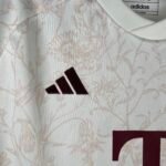 A nova terceira camisa do Bayern de Munique é off-white e traz gráficos estampados com curvas e flores da montanha da Baviera.
