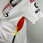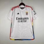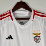 A nova terceira camisa do Benfica traz a cor branca predominante com detalhes vermelhos nas três listras que percorrem os ombros, bem como nas laterais da gola que é redonda na cor branca.