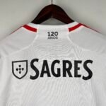 O escudo do  Benfica está no lado esquerdo do peito, enquanto o logo da  Adidas ganha a cor preta no lado direito, cor vista também nos patrocinadores. Ao centro do peito é visto o patch com o brasão nacional, que se refere à posse do título nacional. Na nuca, o selo de 120 anos é novamente visto.
