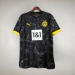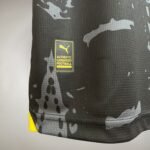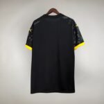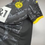 A nova camisa reserva do Borussia Dortmund é preta e traz na região frontal, um gráfico em tom sobre tom que traz uma visão aérea da Borsigplatz, rotatória na cidade de Dortmund, local onde o clube costuma celebrar seus títulos junto da torcida.