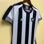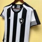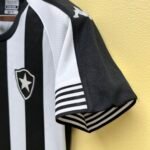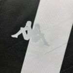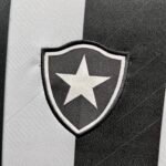 O logo da Kappa é aplicado no lado direito do peito e o escudo do Botafogo é visto no lado do coração em sua forma oficial.