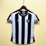 A camisa titular do Botafogo para 2020-2021 traz as tradicionais listras verticais alvinegras sendo três pretas e quatro brancas na parte frontal.