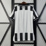 A nova camisa titular aposta no visual clássico e irreverente que marcou época nos anos 90. As tradicionais listras verticais em preto e branco voltam com destaque, acompanhadas por elementos que remetem à era dourada do clube, como gola polo e punhos retrô, que trazem frisos em cinza e branco.