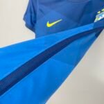 A aplicação do novo escudo da CBF aparece no lado esquerdo do peito e o logo da  Nike aparece em amarelo no lado direito. A mesma cor é vista na numeração nas costas, que traz o estilo usado na Copa de 70.