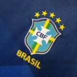 A aplicação do novo escudo da CBF aparece no lado esquerdo do peito e o logo da  Nike aparece em amarelo no lado direito. A mesma cor é vista na numeração nas costas, que traz o estilo usado na Copa de 70.
