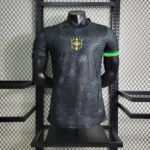 As mangas apresentam uma vibrante combinação de tons canarinhos de um lado e preto total do outro, criando um contraste visual intrigante. A gola, simples e preta, contribui com elegância ao design. O escudo da CBF assume o centro da camisa, destacando-se em um estilo dourado que confere um toque de sofisticação. Esta camisa não apenas presta homenagem a Neymar, mas também representa um tributo à natureza brasileira, tornando-se uma peça única e altamente desejada por fãs e colecionadores.