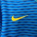 Assim como na camisa amarela, o escudo do kit reserva também aparece centralizado, recordando kits usados há 20 anos, em 2004. Já o logo da Nike, aparece no lado direito em amarelo.