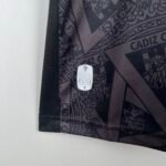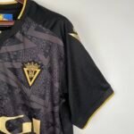A camisa reserva do Cádiz é preta e traz como destaque, um impressionante jacquard com diversos escudos do clube, aplicados na região frontal do manto.