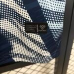A nova camisa reserva do Celta de Vigo traz o azul marinho como base e se destaca pela tradicional faixa diagonal em azul-claro e branco, inspirada diretamente na bandeira galega. No interior da faixa, uma textura de onda faz referência ao mar que banha Vigo, simbolizando a força e o salitre das costas da região.