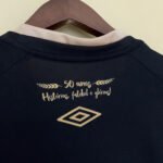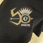 Na nuca, é escrito “50 anos História, Futebol e Glórias”, em dourado, enquanto que na barra um selo especial é estampado.