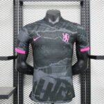 A nova terceira camisa do Chelsea traz o preto como cor predominante e traz no corpo grafismos que relembram os momentos na King’s Road e no Shed End, onde se juntavam os grupos de punk na década de 70.