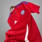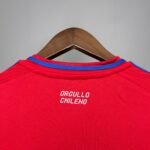A nova camisa titular do Chile é baseado no novo template da marca e tem o tradicional vermelho como predominante, apresentando como destaque um padrão gráfico no corpo, formado por diversos quadriláteros, num tom mais escuro da cor, espalhados de forma a aparecer a grande estrela no centro, no fundo. Os arcos laterais do modelo são brancos, enquanto as três listras nas mangas e a faixa centralizada na nuca têm a cor azul royal. Na nuca, é escrito “Orgulho Chileno”.