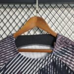 A Camisa Pré-jogo 2023 do Club América em Preto é uma vestimenta exclusiva feita sob medida para os torcedores fervorosos do time de futebol mexicano. Ostentando um design contemporâneo e sofisticado, esta camisa oferece uma fusão envolvente de tonalidades em preto e cinza, criando uma intrigante ilusão de óptica em formas refletivas. O destaque vai para o escudo do clube, habilmente bordado no peito.
