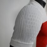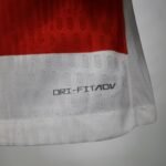 A gola é branca e traz o estilo “mini-polo” usado pela Nike nesta temporada, acompanhado de mangas e punhos na mesma cor. O escudo croata ocupa o lado esquerdo do peito, enquanto o logo da Nike ganha o lado direito em branco.