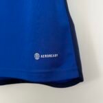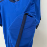 O destaque fica por conta dos detalhes em azul marinho, vistos na gola, que traz recorte frontal e botão, nos punhos, nas laterais e nas três listras nos ombros.