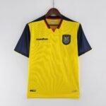 A camisa titular do  Equador é predominantemente amarela com as mangas em azul marinho. A gola traz uma construção especial com as bordas em azul marinho e vermelho e a parte frontal vermelha, já as bordas das mangas trazem sutis filetes amarelos nas pontas.
