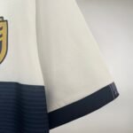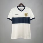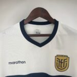 A nova  camisa reserva dos equatorianos, por sua vez, traz a cor branca predominante, com uma faixa horizontal azul escura na região da barriga.