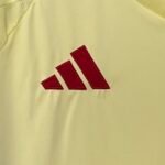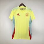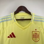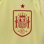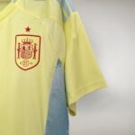 O escudo da Real Federação Espanhola de Futebol é colocado no lado esquerdo do peito, numa versão amarela e vermelha, enquanto o novo logo grande da Adidas vai no lado direito, na segunda cor.