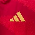 A Adidas estampa seu novo logo em amarelo, no lado direito do peito, enquanto o escudo da Federação da Espanha é vermelho e amarelo.