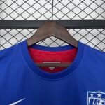 A Camisa dos Estados Unidos em 2004, modelo Away, trouxe um design imponente e elegante. Predominantemente azul escura, era acompanhada de detalhes em branco e vermelho nas mangas e na gola, reforçando a identidade nacional inspirada na bandeira. O escudo da US Soccer se destacava no peito, ao lado do logotipo do fabricante, completando o visual. Um manto que simbolizou a força da seleção norte-americana naquele período, consolidando sua presença em competições internacionais.
