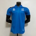 A refinada polo de F1 da BWT Alpine para a temporada de 2023 destaca-se pela sua predominância na cor azul, uma característica distintiva da marca. Apresentando um estilo clássico de gola polo simples, a peça exibe de maneira elegante as marcas dos patrocinadores ao longo do peito e nas laterais das mangas. Essa polo não apenas reflete a sofisticação da marca BWT Alpine, mas também destaca de forma distinta os parceiros que desempenham um papel fundamental para o sucesso da equipe nesta temporada.