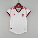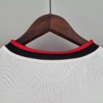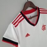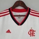 O manto é predominantemente branco, com detalhes rubro-negros nas mangas e efeito visual que remete às bandeiras tremulando nas arquibancadas. A gola redonda com detalhes vermelhos e pretos.