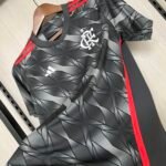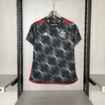 A nova terceira camisa do Flamengo é preta e traz ao longo de toda a parte frontal, um gráfico que remete à diamantes em tons prateados. O escudo “CRF” ganha a cor prata, assim como o logo da Adidas e a aplicação dos patrocinadores.