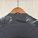 A gola é redonda em preto, enquanto as três listras percorrem os ombros em vermelho, cor que também é vista nos recortes da barra e laterais do kit.