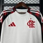 A nova camisa reserva do Flamengo é branca e traz como grande destaque, as mangas que ganham uma mistura entre o preto e o vermelho, inspirado nas penas do urubu, mascote do clube, que foi adotado em 1969, quando a ave sobrevoou o Maracanã em um clássico contra o Botafogo, desde então, se tornou símbolo de raça, sorte e tradição.