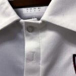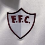 A gola é polo na cor branca e traz botões na mesma cor. Já no peito, o primeiro escudo da história do clube é aplicado no lado esquerdo, com o cinza e o branco divididos, assim como na camisa, e a sigla “F.F.C.” aplicada em grená.