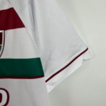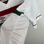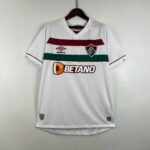 A nova camisa reserva do Fluminense é branca e traz como destaque, na região do peito, duas faixas horizontais, uma em grená e outra em verde, que é acompanhada de uma linha grená na parte inferior. Segundo a fornecedora, o design forma uma bandeira que traduz tradição, força e união.