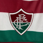 O escudo do Fluminense é aplicado no lado esquerdo do peito, entre as faixas horizontais, no lado esquerdo, com o mesmo acontecendo com o logo da Umbro, que por sua vez, ocupa o lado direito, em grená.